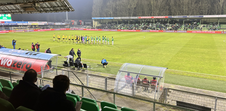 Waar de ploeg van Bas Sibum vorige week nog snel op voorsprong kwam, viel nu een vroege treffer aan de andere kant. Na negen minuten kopte Devin Haen een voorzet van Jaden Slory tegen de touwen. De spits was ontkomen aan de dekking van Brian Koglin en dook vogelvrij op voor doelman Issam El Maach.